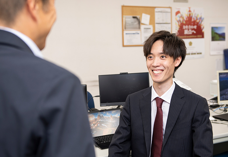周りを見ている人が本当に多いんです。直属の上司ではなくても、責任者の方や他部署の方が気にして声をかけてくれて、みんながみんな仲間のことを気にかけています。初めて契約を取れた時は、事業部長が「やったな!」と握手をしてくれて本当にうれしかったです。